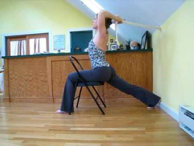 Modifications for lunge poses and one-legged king pigeon using chair and rope as props